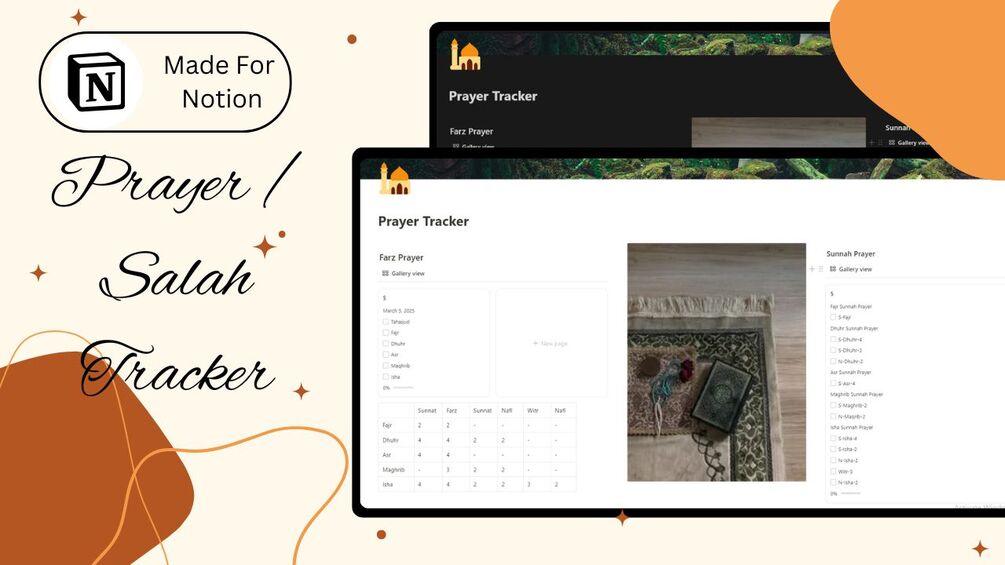 Salah / Prayer Tracker$0+$0+https://schema.org/InStockusdSunnyHubSunnyHubGet this template to track your salah and build an habit to pray all your prayers.Name a fair price:$Add to cartAdd to wishlist New wishlistShareShare on XShare on Facebook Copy linkCopy product URL