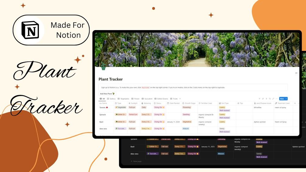 🌱 Simplify Your Gardening with This Plant Tracker Notion Template!