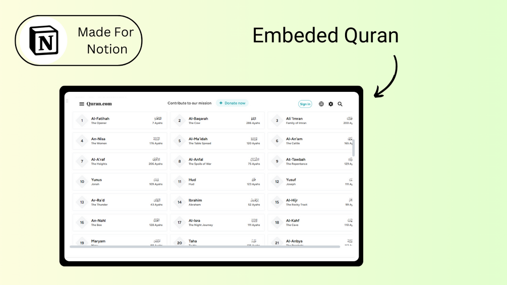 -In-built Quran: Here you can have access to the Quran with translation and tafsir without leaving the page.